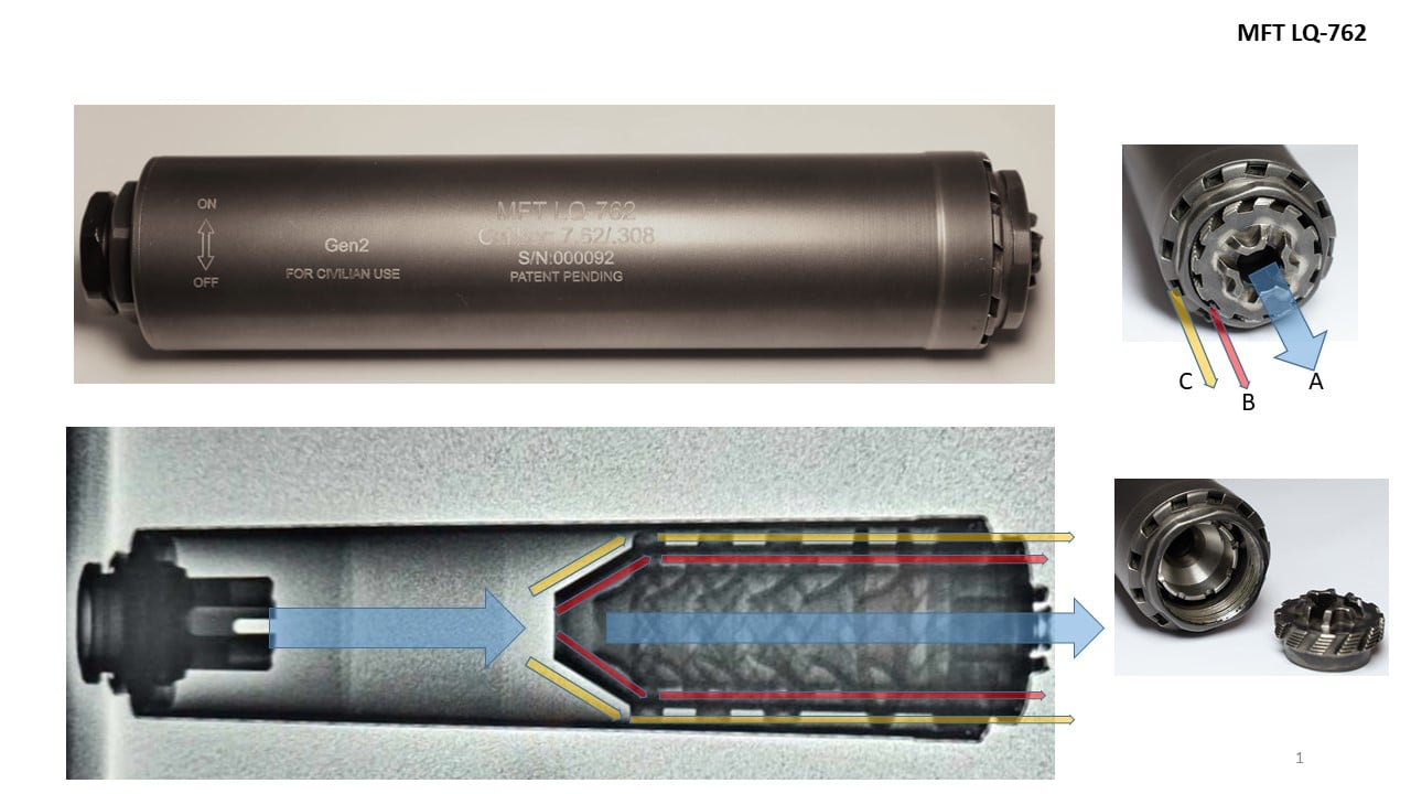 Tłumik przepływowy MFT CQ762, kal. 9 oraz 7,62.
