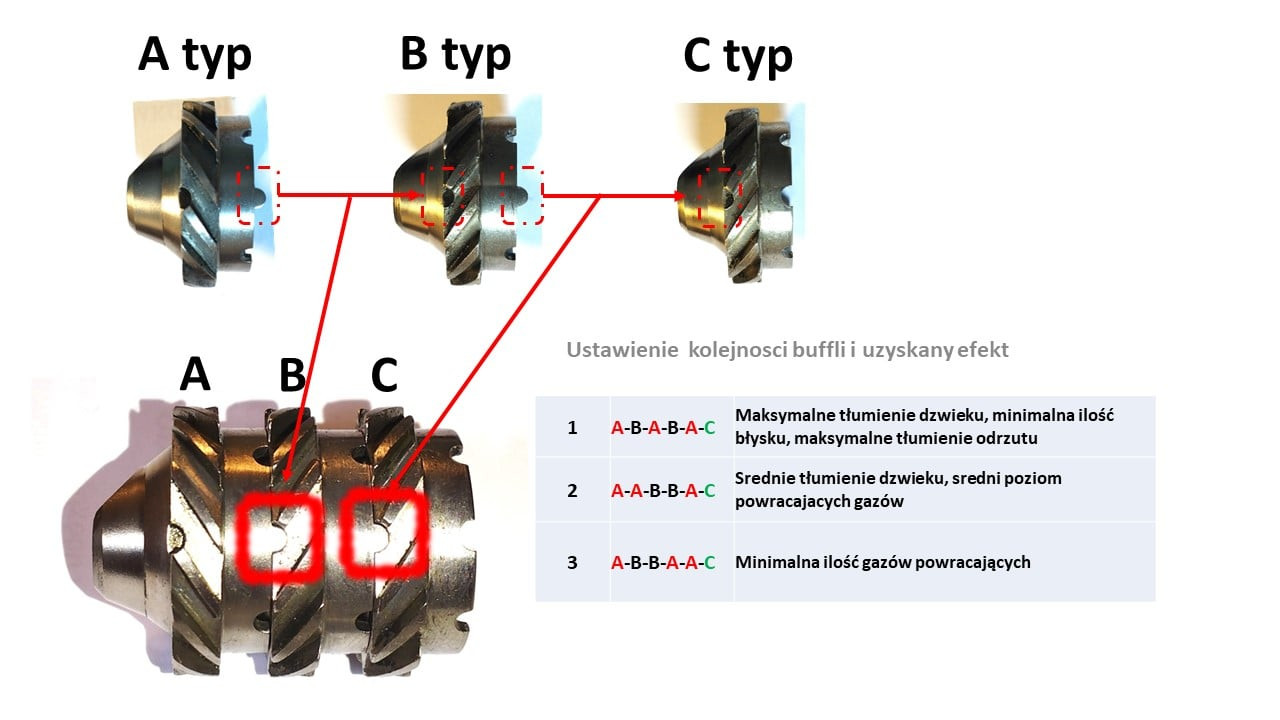W komplecie z tłumikiem płomienia na gwint 1/2-28.