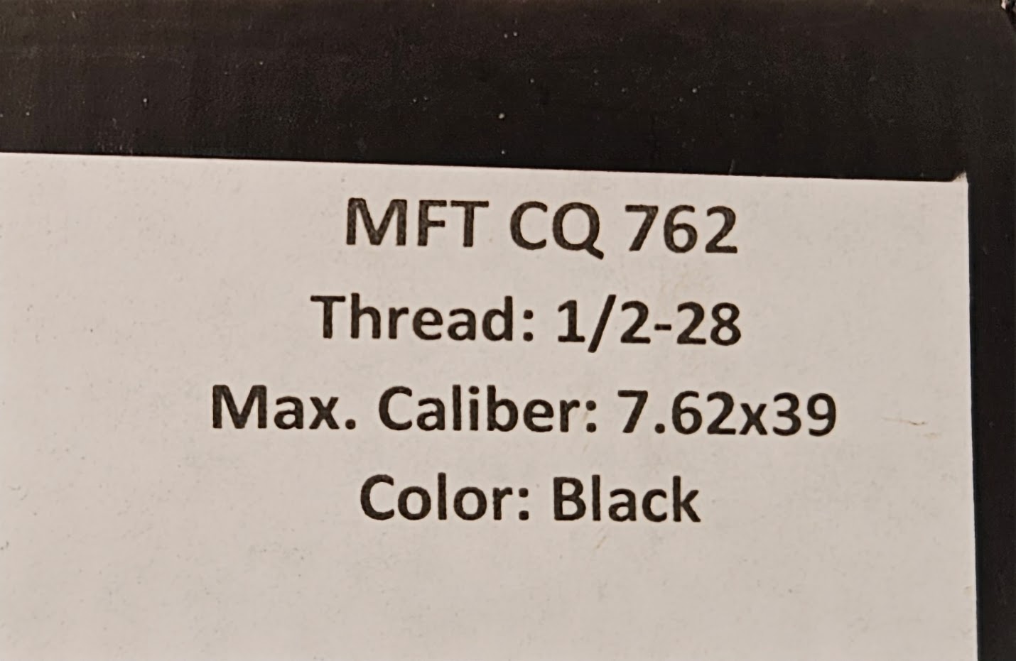Tłumik przepływowy MFT CQ762, Cerakote Black, w komplecie z tłumikiem płomienia na gwint 1/2-28, kal. 9 oraz 7,62